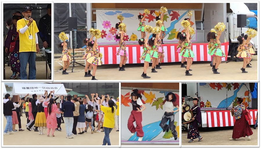 まつりは、正午に自治協議会の稲田会長の挨拶に続き「ちんどん」の軽快なリズムで始まり、終盤には雨が降り出すあいにくの天候となりましたが、ステージでは最後まで様々な世代の方たちの見事なパーフォーマンスが繰り広げられました。