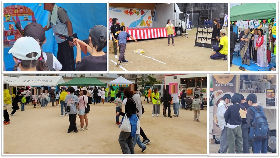 また、町内会などの出店では、射的やダーツなどに子どもたちの歓声が響き、キッチンカーには沢山の方が列をなしていました。
