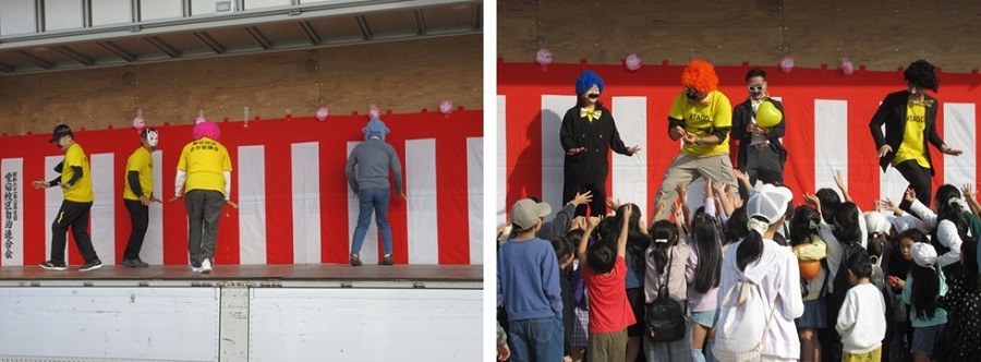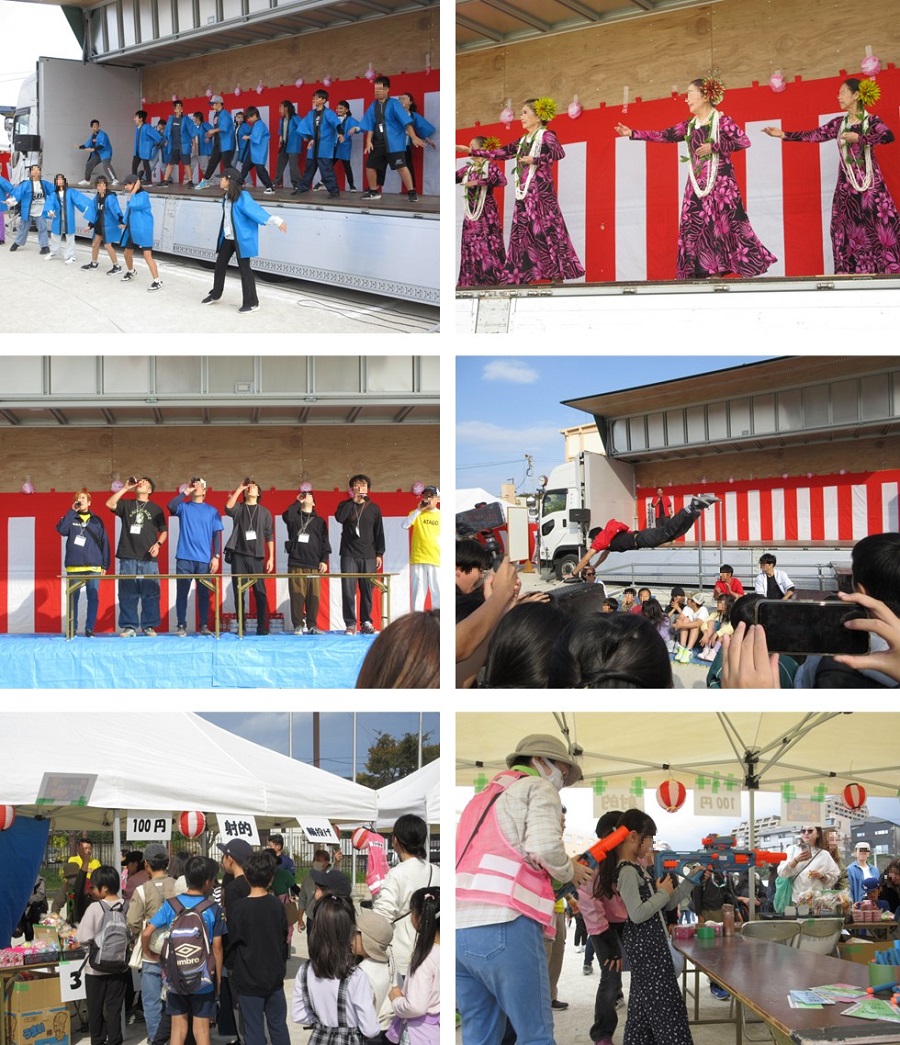 お祭りでは、愛宕小5年生による「南中ソーラン」や、小学生による「ナウダンス」、公民館サークルによる「フラダンス」が披露されたほか、射的や輪投げなどのゲーム、綿あめやフランクルの販売など、多くのお店も出店していました。