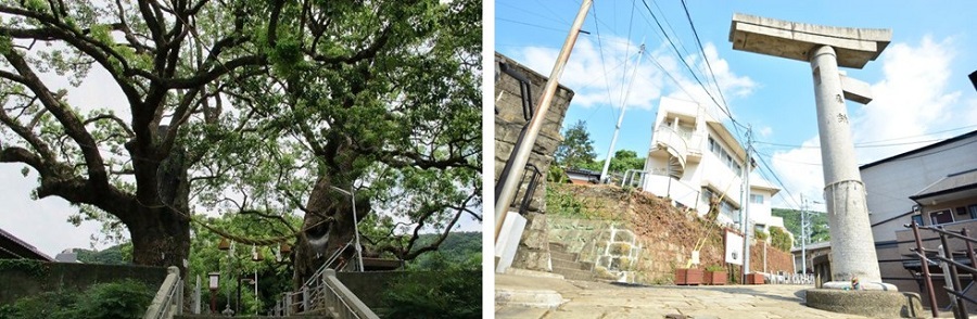 ▼山王神社(長崎市)にある大クスと片足鳥居です。
