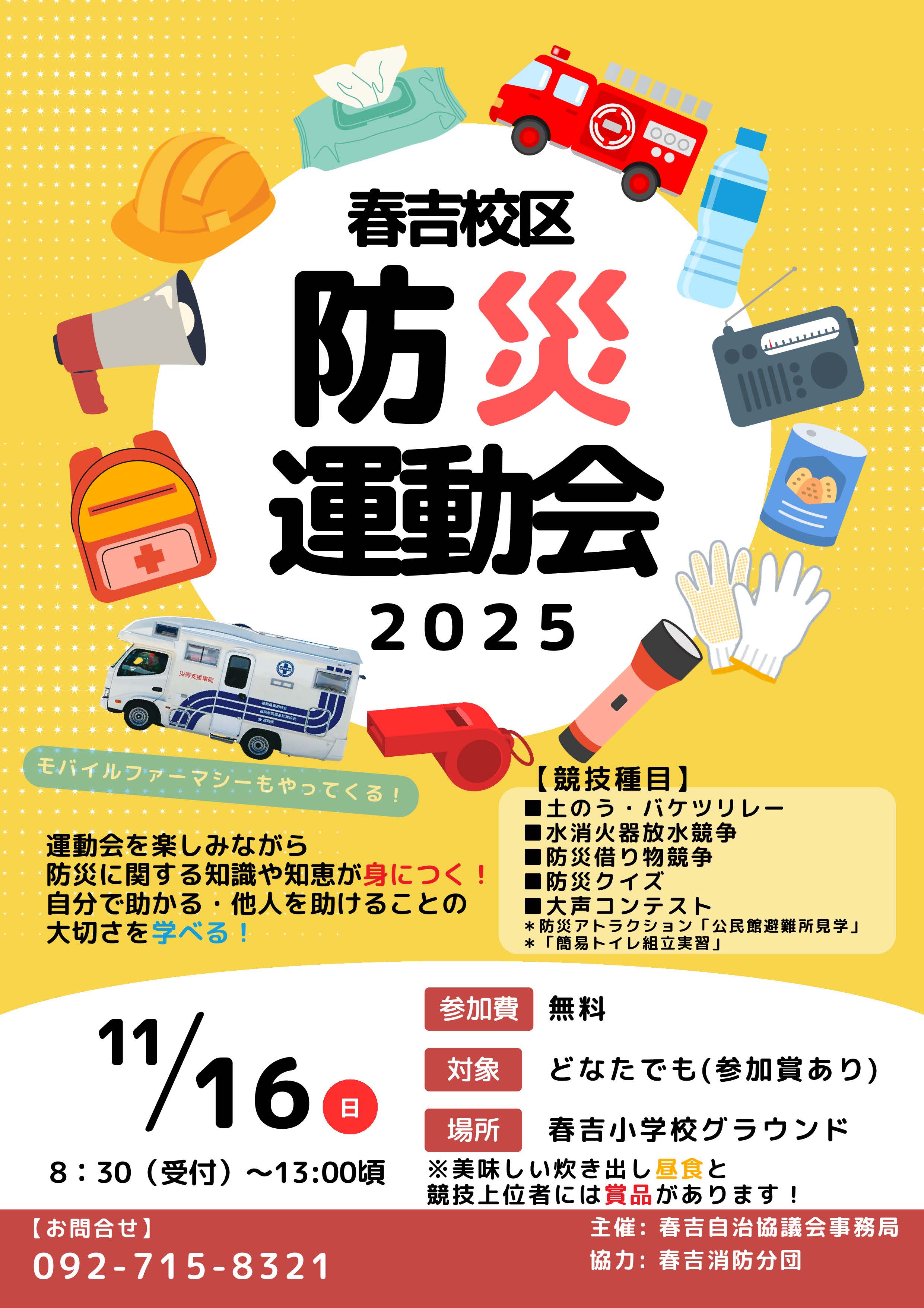 11月16日(日)春吉小学校グラウンドで「防災運動会」を開催します!