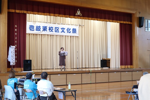 ▼壱岐東校区自治協議会の水﨑会長のあいさつで文化祭が始まりました。