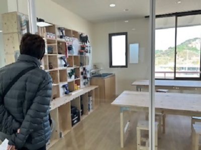 館内は、通路も広く、床が足に負担の少ないカーペット式になっており、各部屋やトイレなどの案内サインも大きくわかりやすく配置されています。大小の研修室や和室に加え、新たに工具が揃ったDIYルームやキッチンルームが設置されており、「福岡100プラザ博多」も利用しているという男性は、「きれいな施設でいいですね。家から近いのでまた来ようと思います」と話します。