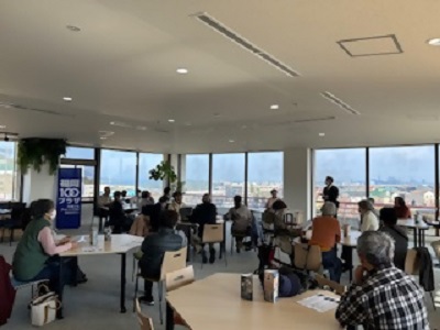目玉は4階のコワーキング交流スペースで、部屋から見える福岡タワーや市内の街並みに、参加者は驚きの声をあげていました。