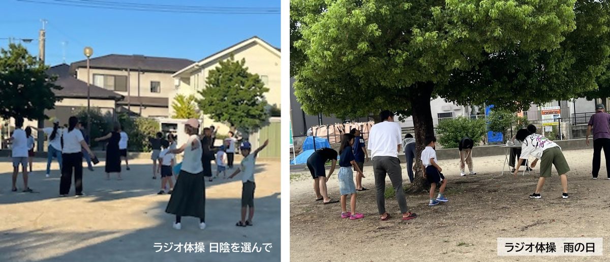 夏休み期間中の平日朝7時から、地域の子どもや保護者、高齢者の方々も皆で集まり、継続してラジオ体操を行いました。