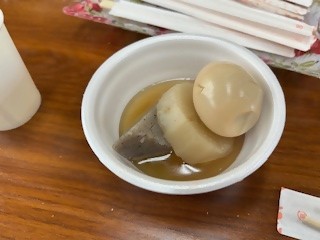 参加者には、きなこもちやあんこもち、おでんなどがふるまわれ、皆さん喜んで食べていました。
