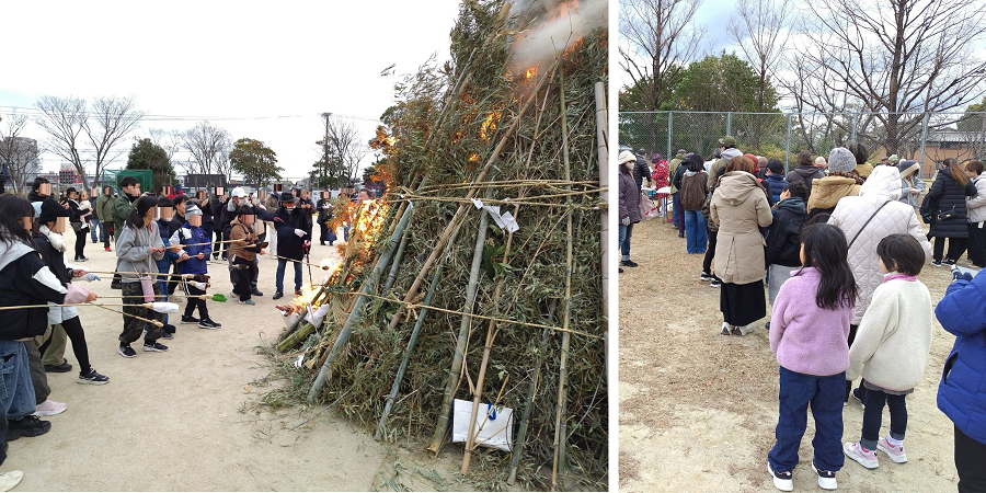 令和8年1月11日(日)、福重2丁目の壱岐公園で福重校区の「どんど焼き」が行われました。
