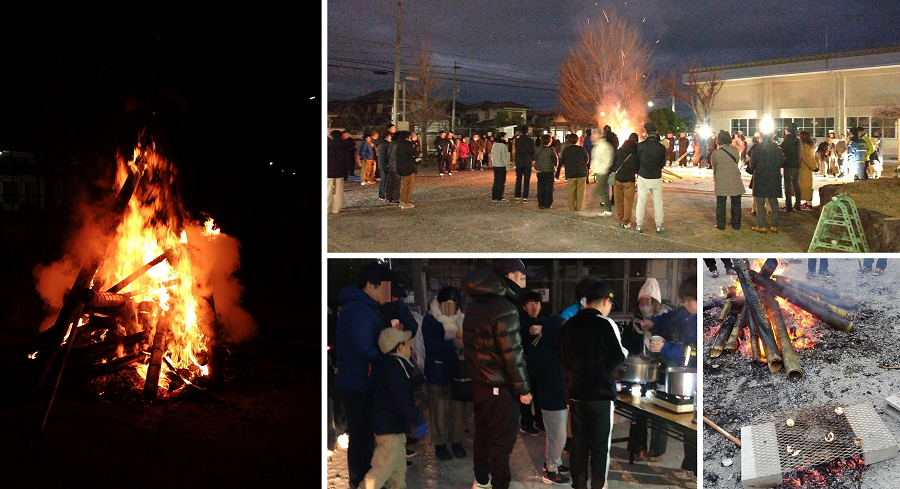 令和8年1月12日(月・祝)石丸校区自治協議会が主催する「どんど焼き」が石丸小学校の中庭で行われました。
