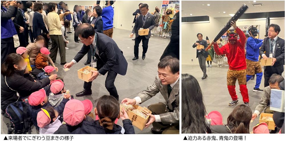 赤鬼や青鬼の登場に園児が泣き出す場面も見られましたが、会場は終始和やかな雰囲気に包まれ、福を呼び込むひとときになりました。