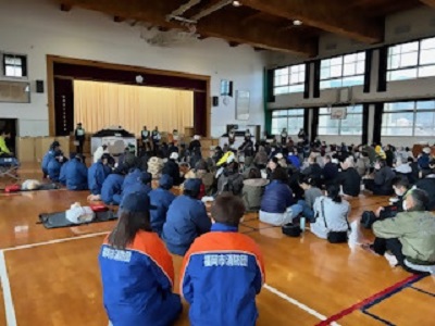 令和8年2月1日(日)金武小学校を会場に「第12回金武校区防災訓練」が開催され、約200名が集まりました。校区住民も巻き込んだ全員参加型の訓練はおよそ10年ぶりの開催です。