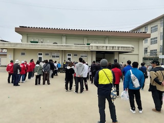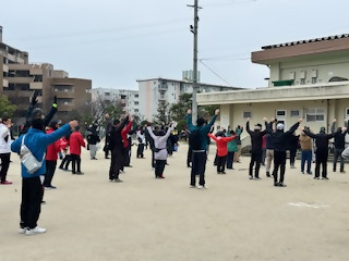 令和8年2月15日(日)下山門小学校にて、下山門、西陵、城原、石丸の4校区の体育振興会、スポーツ振興会主催の「第20回4校区親善スポーツ大会」が開催されました。明け方までの雨もやみ、4校区から100名を超える選手や観客が集合しました。