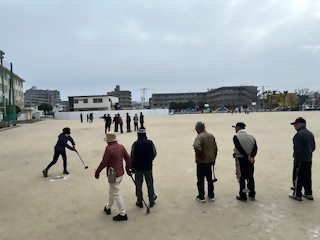 大会運営を担当した下山門校区体育部会 小﨑部会長は、「明け方までの雨で、グラウンドゴルフの開催が危ぶまれました。早朝からスタッフでグラウンド整備をしました。参加の皆さんが楽しんでいるようでよかったです。」と話しました。