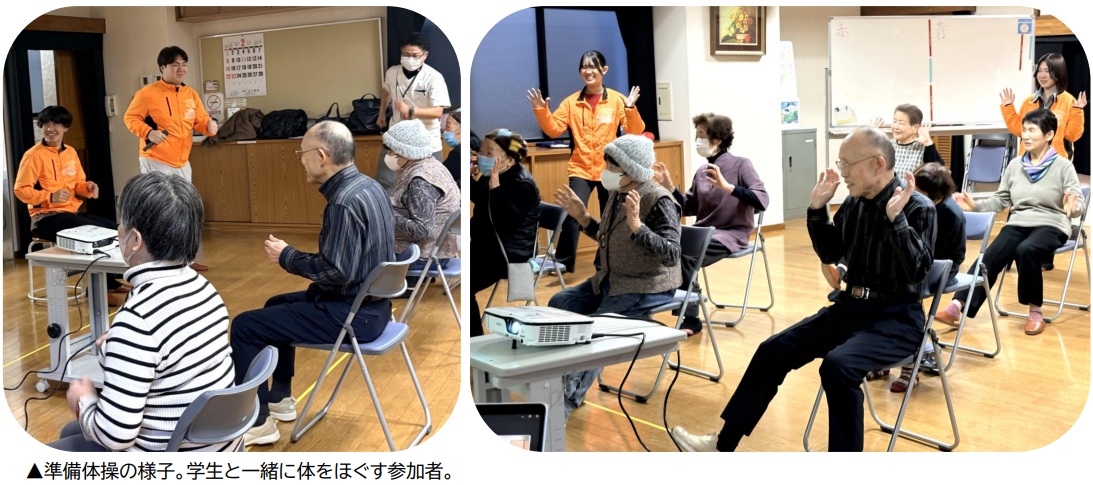 「授業の一環として2年生が1年間講師を務めています。毎回学生が内容を考え準備をしています。参加者が安全に、そして楽しく健康づくりができるよう工夫しています。将来福祉の仕事を目指す学生にとって、高齢者の方と継続して関わる経験は大きな学びです。」