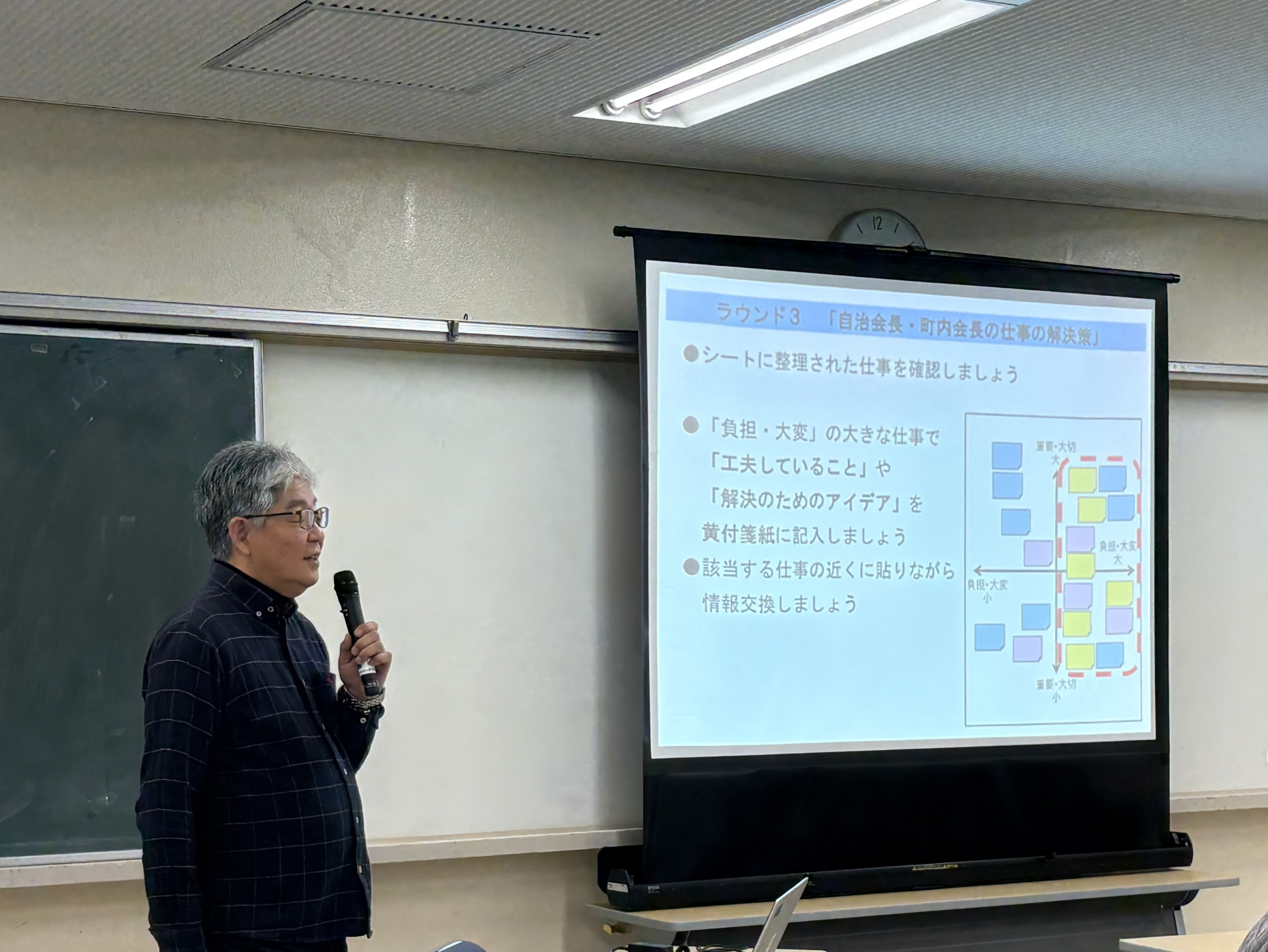 その中で、町内会活動サポーターを募って運営を分担する工夫や、町内会HPを立ち上げて情報共有をデジタル化している事例など、現場から生まれたアイデアも共有されました。参加した自治会長からは「他自治会の具体的な事例が非常に参考になった」との声が聞かれました。