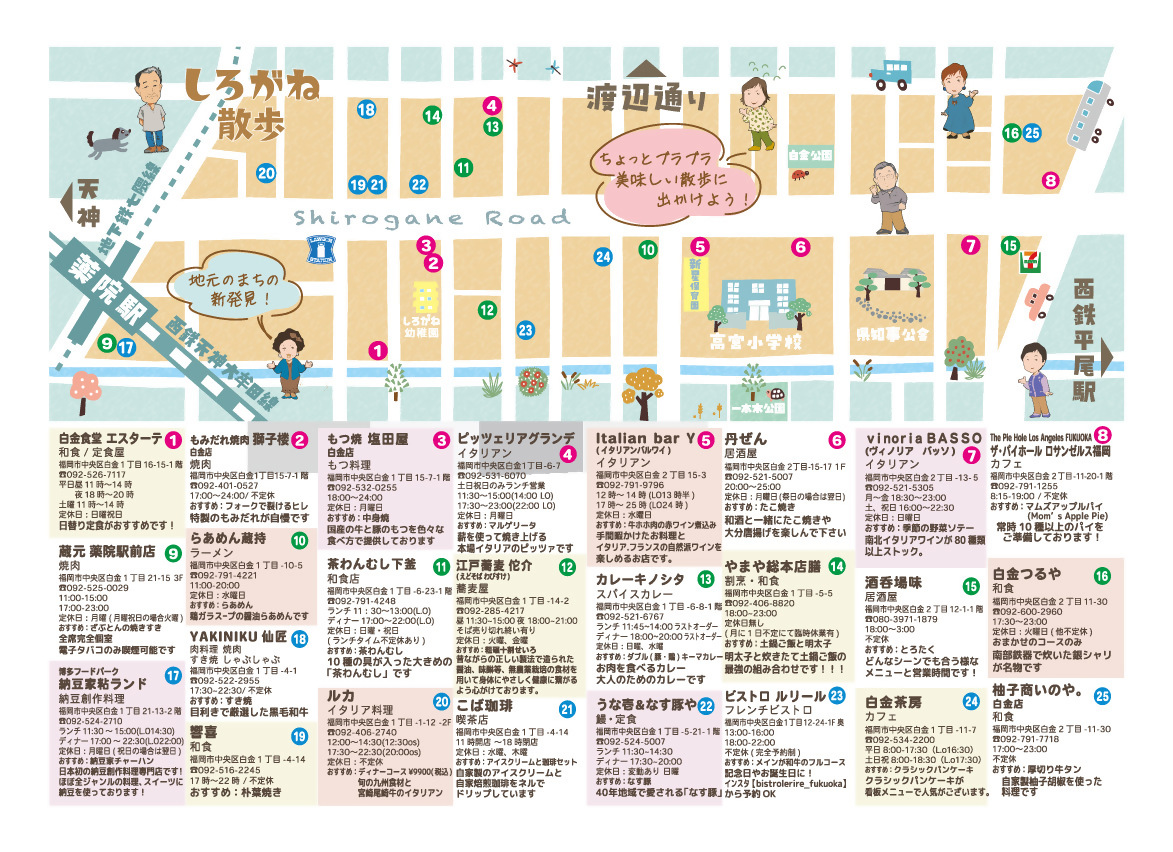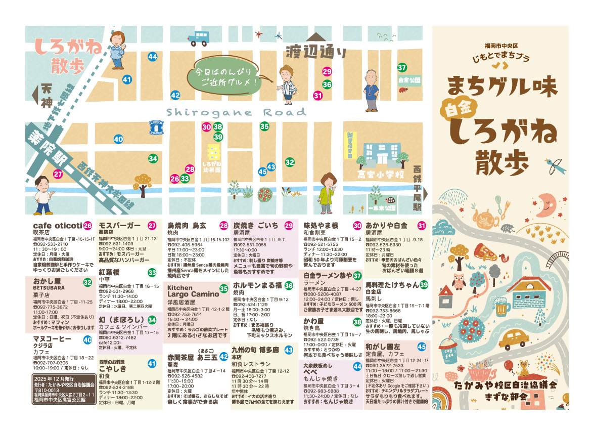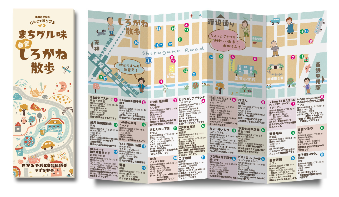 高宮校区自治協議会 「絆部会」 より、白金エリアの飲食店等をまとめたマップが届きました!