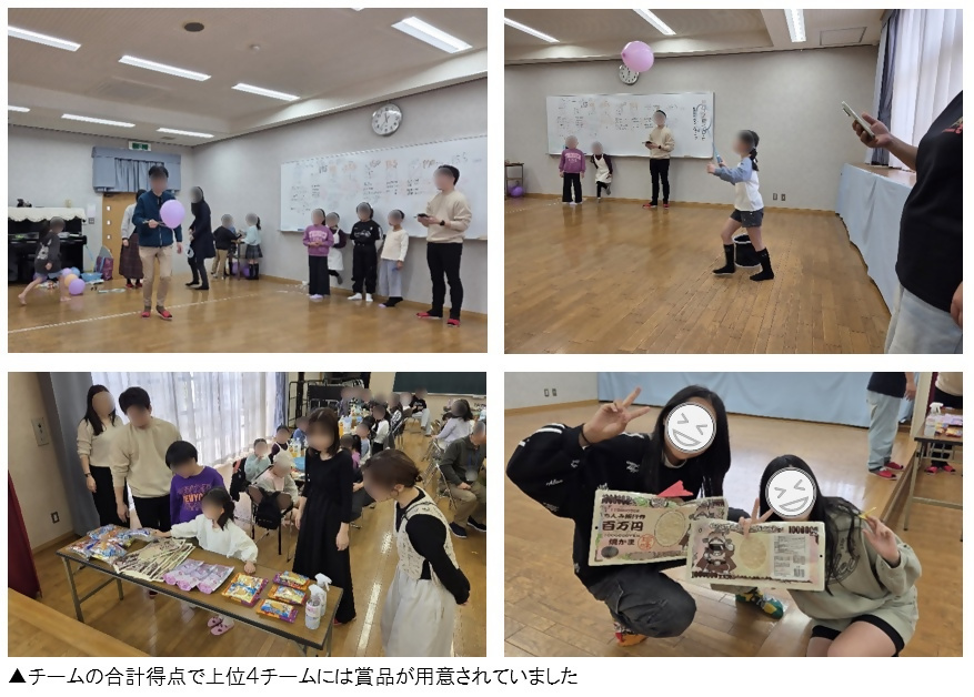 次のゲームは、風船はこび。さまざまな道具を使い、風船をバトンにしたタイムレースです。紙飛行機飛ばしで深まったチームワークが活かされていました!