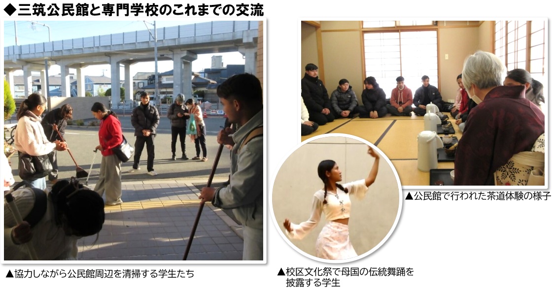また、年に1回、三筑小学校で国際交流授業を実施し、専門学校の学生が母国の紹介やダンスを披露するほか、小学生もダンスを披露して交流を深めています。さらに三筑校区の文化祭でも、日本語スピーチやダンスの披露を行うなど、地域との交流を継続的に続けています。
