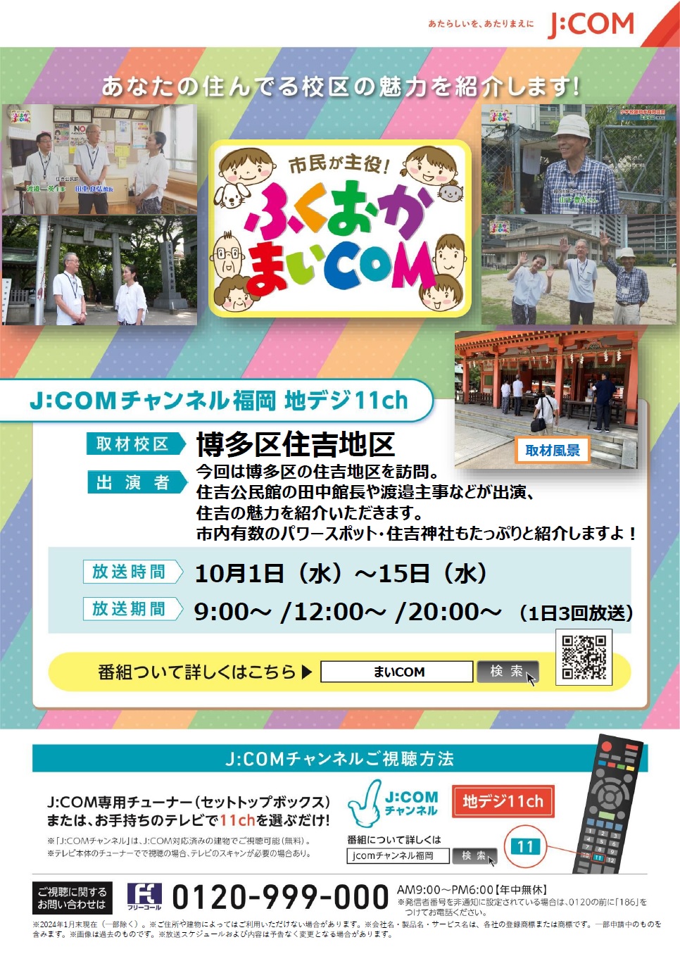 10月1日(水)~15日(水)までJ:COM「市民が主役!ふくおかまいCOM」で博多区住吉地区が紹介されます。ぜひご覧ください!!