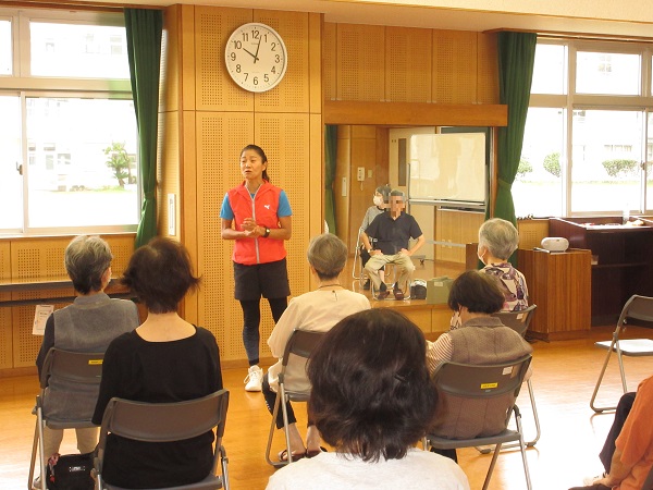 当日は健康運動指導士の穴井芳恵先生の指導のもと、約1時間の講座が行われ、22名(定員30名)の方が参加されました。