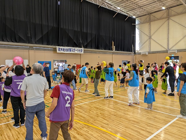 このスポーツ大会は、約50年前から続いていますが、近年では、子どもから高齢者まで参加できるモルックなどニュースポーツを取り入れた町内会の恒例行事となっています。