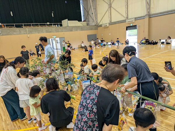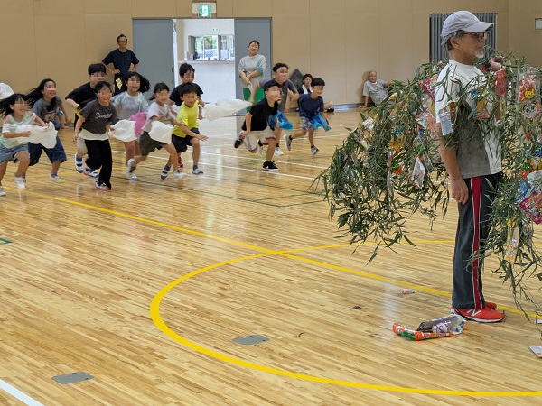 特に、たんざく取りは、未就学児、小学1年生~3年生、小学4年生~6年生、高齢者(70歳以上)の4チームに分かれて順次、短冊についている景品の取り合いで、大変盛り上がっていました。