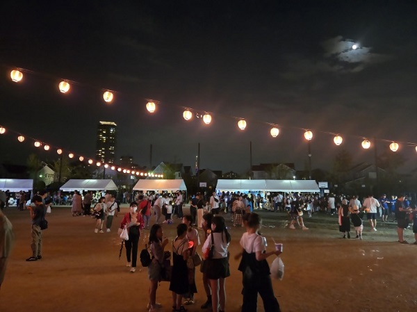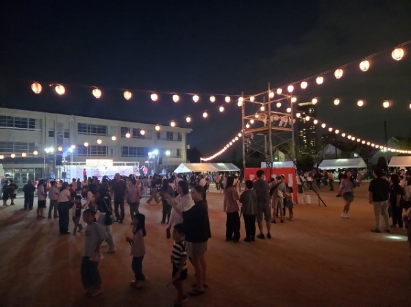 直前まで小雨が降る中、開始時間を遅らせ午後5時からのスタートとなりましたが、子どもからお年寄りまで多くの人が参加しました。