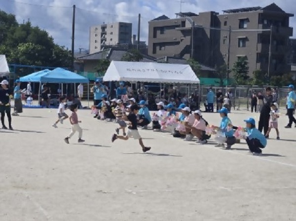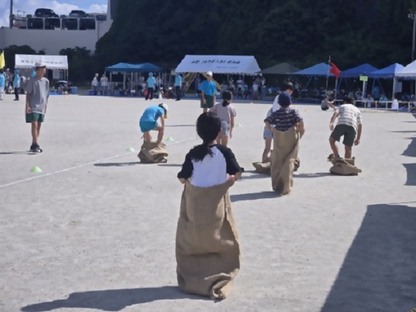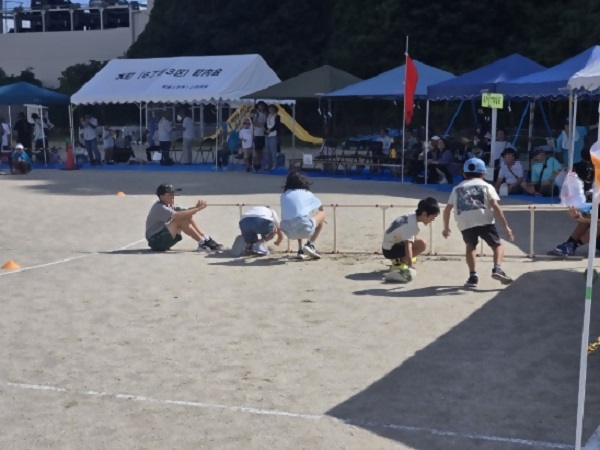 競技は、障害物競走や玉いれ、来年度新一年生と幼児によるかざぐるまとり、参加者全員による大玉送り、町内対抗リレーなどが行われそのたびに歓声が起こっていました。