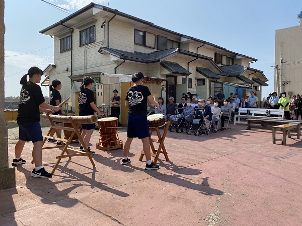 オープニングセレモニーでは、大園区長、白水自治協議会会長からの挨拶のあと、テノール歌手の岡先生による歌の披露や、小呂島中学生による小呂島太鼓の演奏が実施され、いきいきサロン参加者をはじめ、多くの島民の方にも参加いただきました。