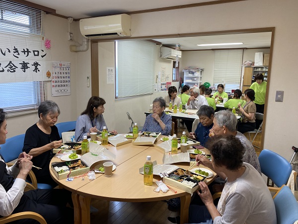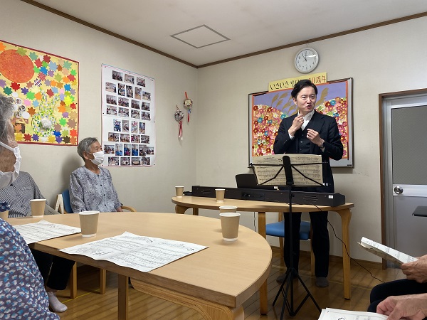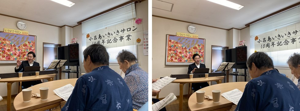 また、セレモニー後の交流会では、「とんぼのめがね」など計6曲をサロン参加者と岡先生と一緒に歌い、のどの筋肉を鍛えることで、楽しみながら誤嚥を予防する、歌を活用した誤嚥予防講座を実施しました。
