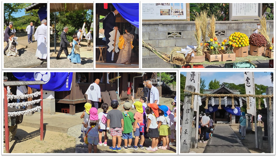 厳かに進む『おくんち』を、氏子の方だけなく、能古保育園の園児や能古小学校の児童なども見学に訪れて、秋晴れの中、島の伝統を身近に感じていました。