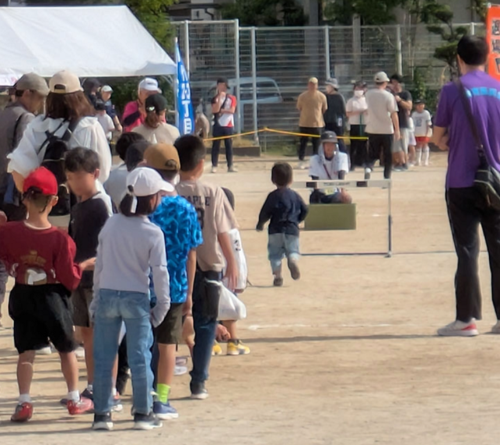 「チビッコ宝探し」は、ハードルをくぐって、その先の宝箱を目指します。かわいらしくも一生懸命な姿に声援と拍手が起こります。