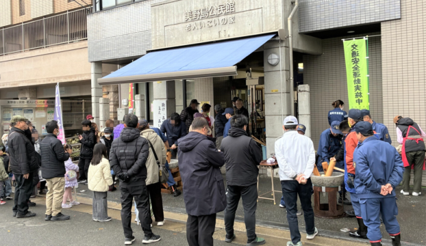美野島社会福祉協議会主催の「もちつき体験会」と住吉地区の住吉4丁目1区・2区自治会で「もちつき」が開催されました